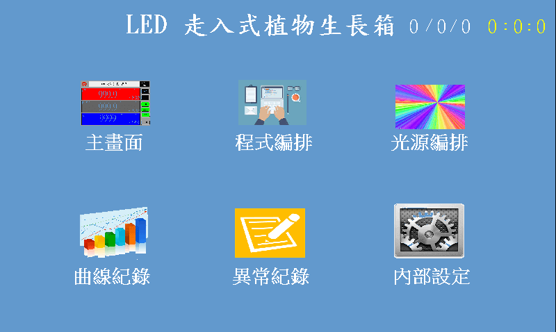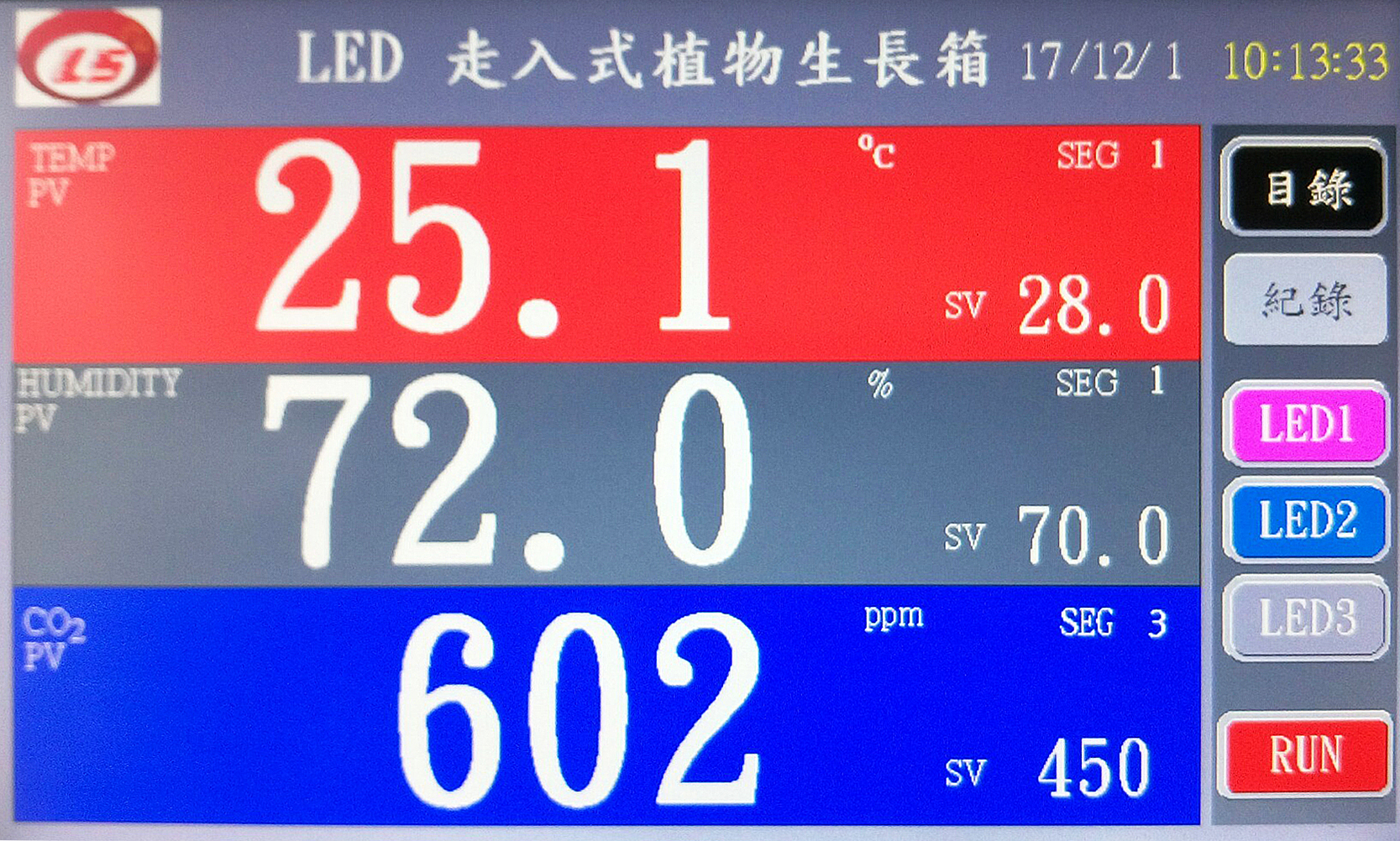 自行編程溫度、濕度、光照控制條件,模擬出天候變化條件,依照設定執行線性控制環境條件 |